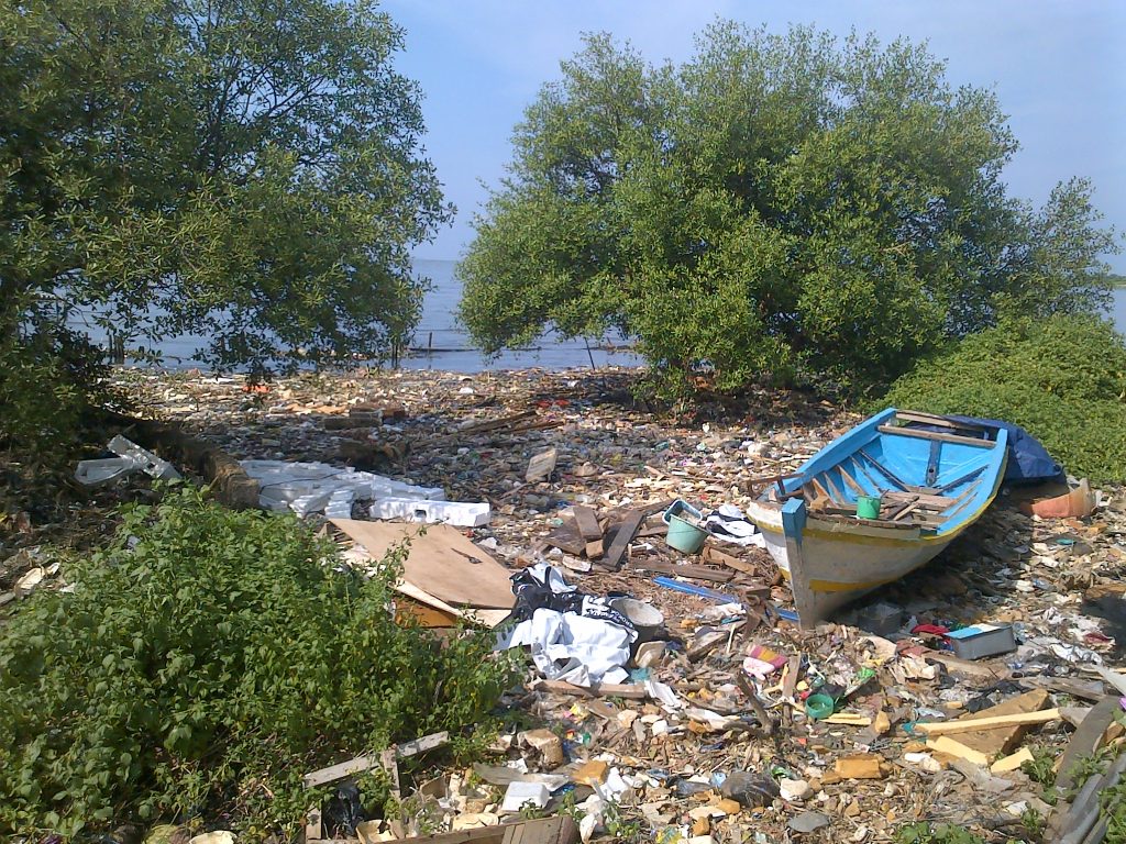 Plastic accumulates in the mangrove forests of North Jakarta. 2014. nsh/tanahair.net